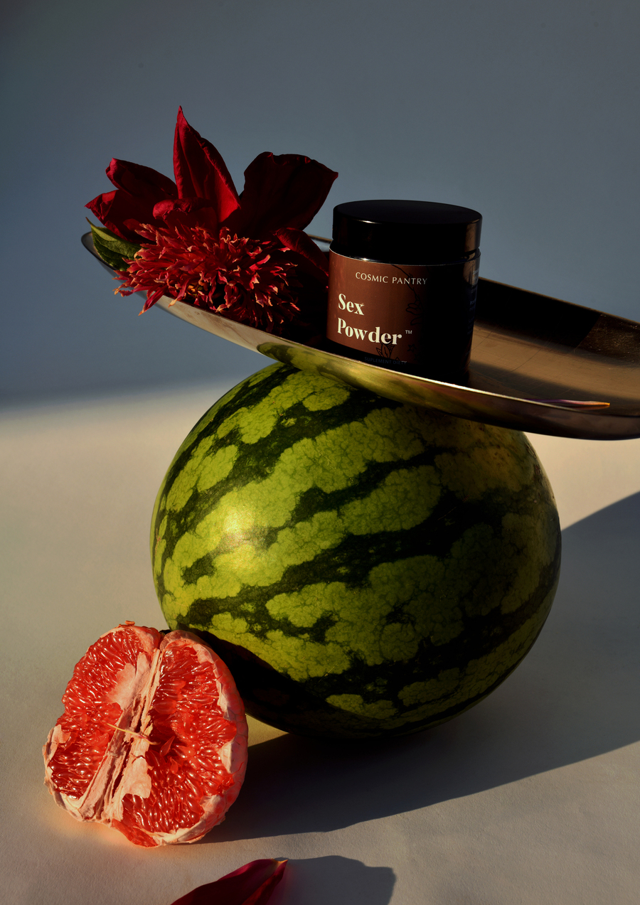 Photoshoot production for Cosmic Pantry’s relaunch of their bestseller product – Sex Powder. We wanted to capture natural and raw sensuality without it being cheesy. Textures, colors and set design relates to the qualities of the product.